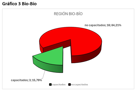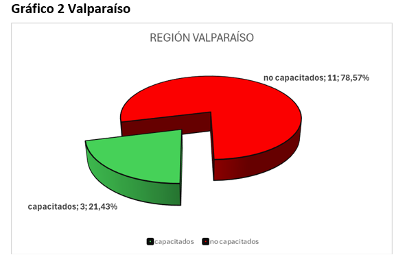 En los gráficos a continuación se puede apreciar de manera más clara la real dimensión de la falta de capacitaciones en las materias específicas del presente análisis en las 3 principales regiones del país respecto a las dos últimas anualidades.